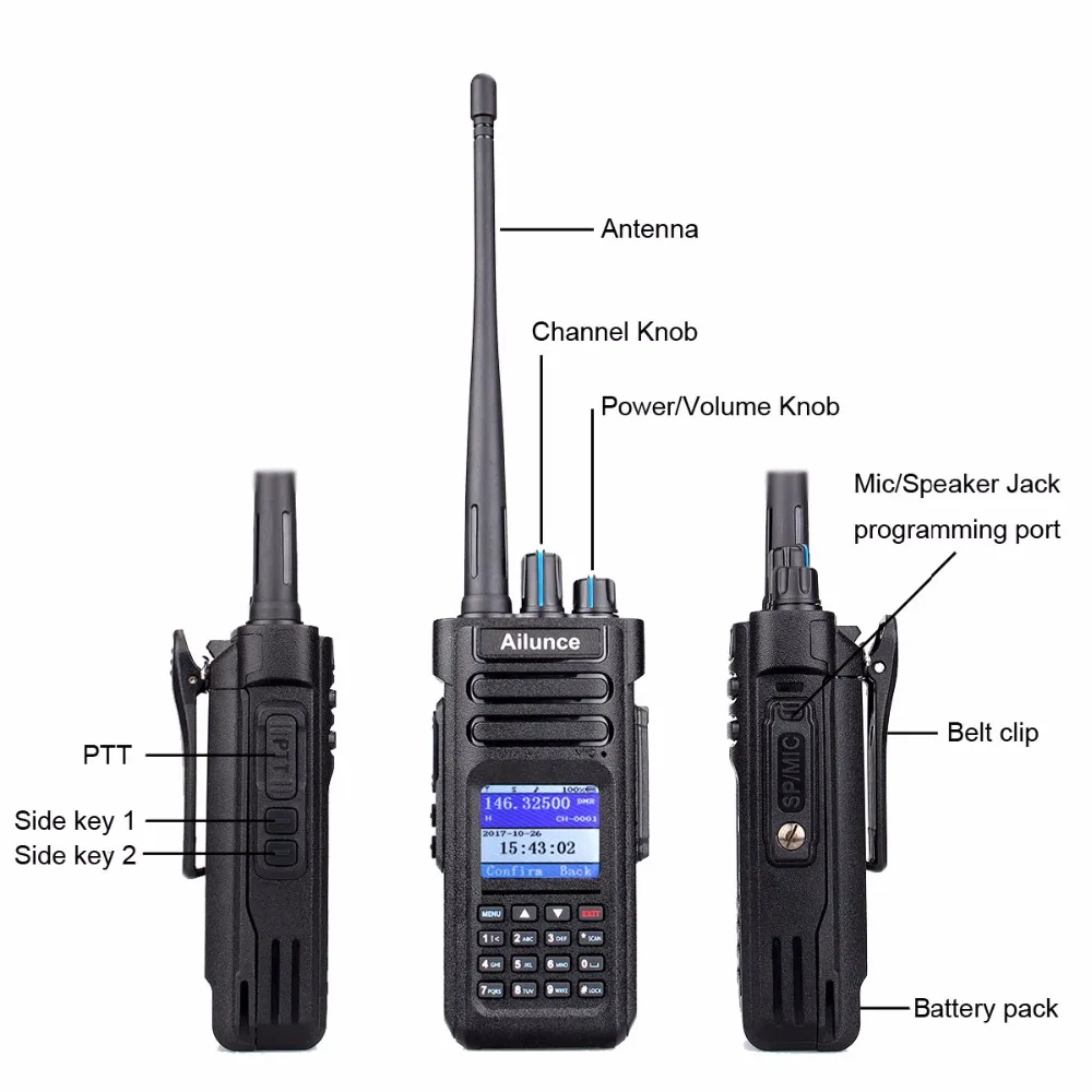 Retevis Ailunce HD1 Digital Walkie Talkie Dual Band DMR Radio DCDM TDMA UHF VHF Radio Station HF Tr