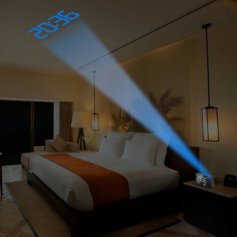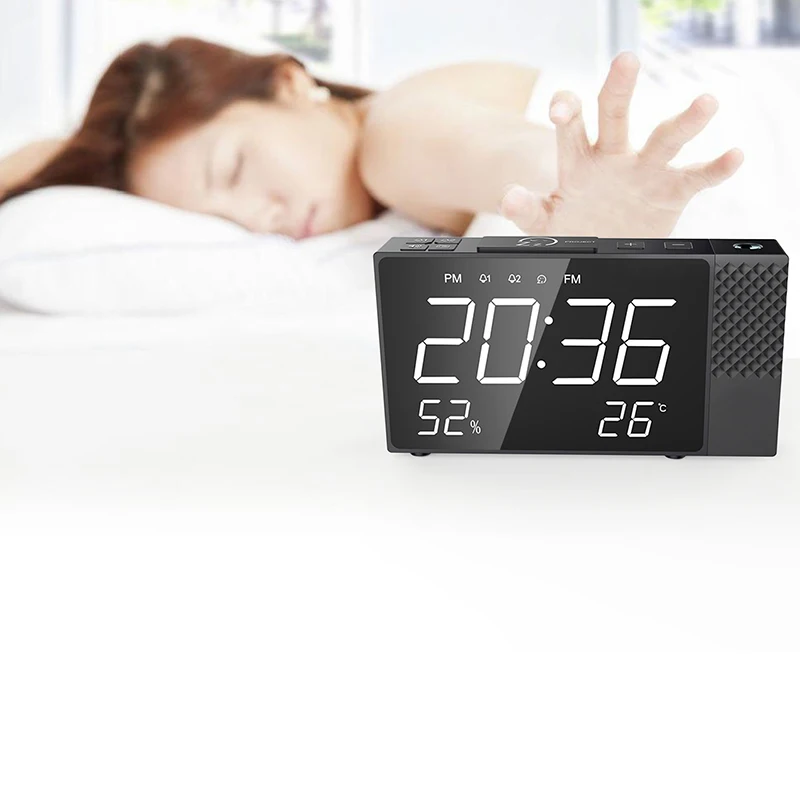 2019 New Digital Radio Projection Alarm Clock Power Back USB Charger Mirror LED Display Timed Wake
